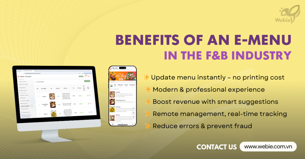 The F&B industry today constantly prioritizes customer experience which goes beyond delicious food to encompass convenience and speed. If you are still struggling with torn paper menus or staff frequently taking incorrect orders, it is time for a change. An E-menu is the ultimate solution to help F&B businesses optimize operational processes and breakthrough revenue records.
